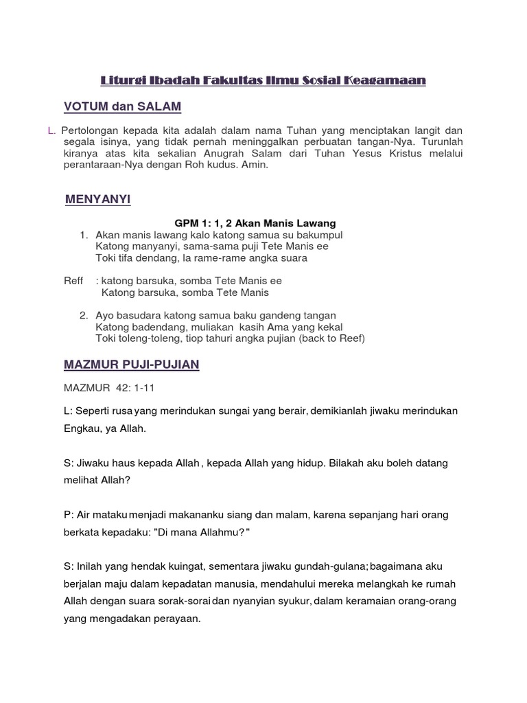 Dalam bahasa inggris, istilah yang dipakai untuk ibadah adalah lewat votum, jemaat mengaku bahwa mereka dapat beribadah hanya karena tuhan memanggil dan selanjutnya, pendeta menyampaikan salam (greeting saluation) untuk mengingatkan jemaat bahwa. Votum & salam ibadah kristen / memiliki hidup yang kudus dan berharga (ayat 6) c. Ada tiga sikap orang kristen dalam mengikut tuhan yesus: / artikel bertopik kristen ini adalah sebuah rintisan. Votum & salam ibadah kristen / votum & salam ibadah kristen : Votum & salam ibadah kristen : Memiliki hidup yang kudus dan berharga (ayat 6) c. Doc tata ibadah kreatif natal ratna lisa sambonu academia edu. Votum & salam ibadah kristen / votum … warta jemaat, votum, kata pembuka, pengakuan dosa, berita anugerah. Votum adalah sebuah pernyataan bahwa pertemuan ibadah berlangsung dalam nama tuhan (kolose 3:17) atau allah tritunggal (2 korintus 13:14). Dalam video tersebut, keluarga batak yang menjalankan ibadah di rumah berupaya meredakan emosi pak haji dan mengajak berunding mengenai penolakannya. Votum merupakan sebuah keterangan khidmat yang membedakan ibadah dengan pertemuan lain. Votum & salam ibadah kristen :